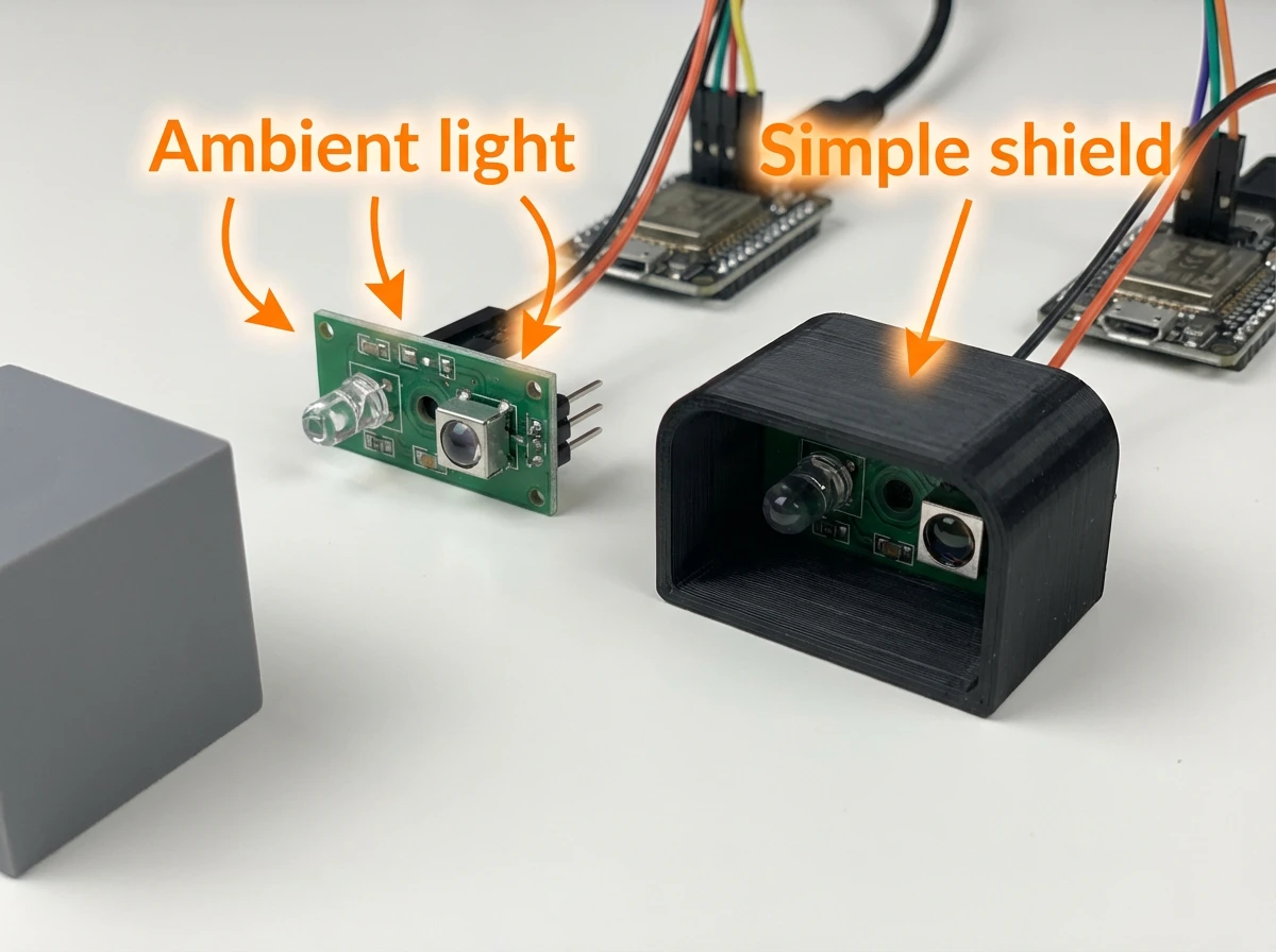 IR is also often convenient when space is limited. You don't need to mount a large “two-eye” module like with many ultrasonic sensors. This makes IR handy in small housings or in prototypes where you want to quickly hide something neatly.